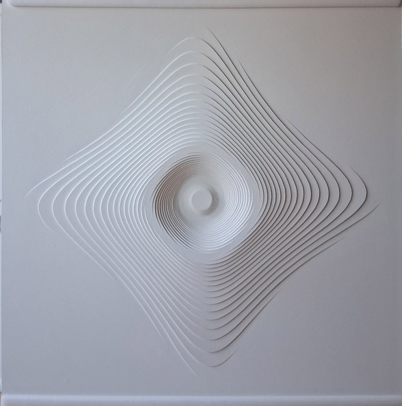 배국순 작가는 '소리'라는 비가시적인 대상을 시각적 실체로 변주하는 조형 언어에 집중한다. 작가는 청각적 떨림을 단순한 현상으로 치부하지 않고, 이를 점, 선, 면과 같은 기하학적 요소로 치밀하게 재구성하여 화면 위에 안착시킨다. 섬유질 보드, MDF, 아크릴 판재 등 현대적인 물성을 지닌 재료를 레이저 성형하거나 금형 작업을 거쳐 입체적 부피감을 형성한 뒤, 수백 번의 붓질과 마티에르 작업을 통해 고유한 질감을 부여한다. 이러한 일련의 행위는 무감각했던 사물의 물성을 의미 심장한 감정의 영역으로 승화시키는 핵심적인 요체로 작용한다.