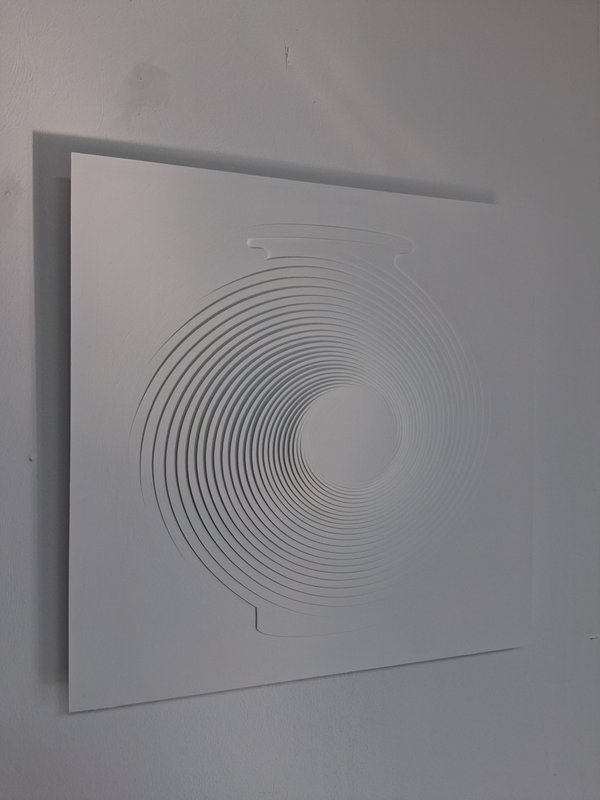 배국순 작가는 '소리'라는 비가시적인 대상을 시각적 실체로 변주하는 조형 언어에 집중한다. 작가는 청각적 떨림을 단순한 현상으로 치부하지 않고, 이를 점, 선, 면과 같은 기하학적 요소로 치밀하게 재구성하여 화면 위에 안착시킨다. 섬유질 보드, MDF, 아크릴 판재 등 현대적인 물성을 지닌 재료를 레이저 성형하거나 금형 작업을 거쳐 입체적 부피감을 형성한 뒤, 수백 번의 붓질과 마티에르 작업을 통해 고유한 질감을 부여한다. 이러한 일련의 행위는 무감각했던 사물의 물성을 의미 심장한 감정의 영역으로 승화시키는 핵심적인 요체로 작용한다.