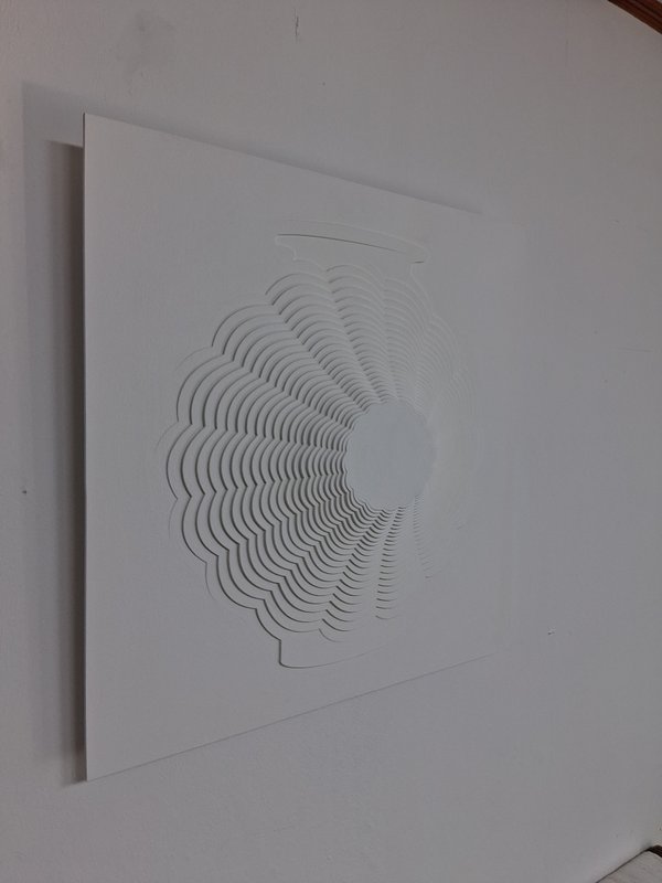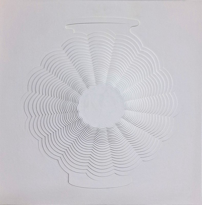 배국순 작가는 '소리'라는 비가시적인 대상을 시각적 실체로 변주하는 조형 언어에 집중한다. 작가는 청각적 떨림을 단순한 현상으로 치부하지 않고, 이를 점, 선, 면과 같은 기하학적 요소로 치밀하게 재구성하여 화면 위에 안착시킨다. 섬유질 보드, MDF, 아크릴 판재 등 현대적인 물성을 지닌 재료를 레이저 성형하거나 금형 작업을 거쳐 입체적 부피감을 형성한 뒤, 수백 번의 붓질과 마티에르 작업을 통해 고유한 질감을 부여한다. 이러한 일련의 행위는 무감각했던 사물의 물성을 의미 심장한 감정의 영역으로 승화시키는 핵심적인 요체로 작용한다.
