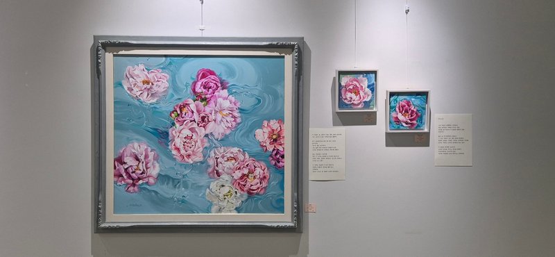 김귀향 작가는 시련의 시간을 견뎌내고 피어난 생명력을 '꽃'이라는 유기적인 매개체를 통해 시각화한다. 작가에게 꽃은 단순한 식물의 형상을 넘어 고난을 통과한 이들에게 선사하는 보석보다 귀한 보상이자 위로의 상징이다. 화면 속 꽃들은 정적인 관찰의 대상이 아니라, 역동적으로 요동치며 생동감을 분출한다. 작가는 인위적인 미학을 넘어 '시리도록 아름다운' 절정의 순간을 포착하기 위해 색채의 화려함과 생동감을 극대화하는 작업 방식을 취한다. 이러한 조형적 구성은 캔버스 안에서 멈추지 않고 끊임없이 흐르며 또 다른 생명을 잉태하는 순환의 구조를 보여준다. 거친 시간을 뚫고 피어난 한 송이 꽃의 서사는 작가의 세밀한 필치와 강렬한 색조를 통해 보는 이에게 환희와 기쁨의 정서를 전달한다.