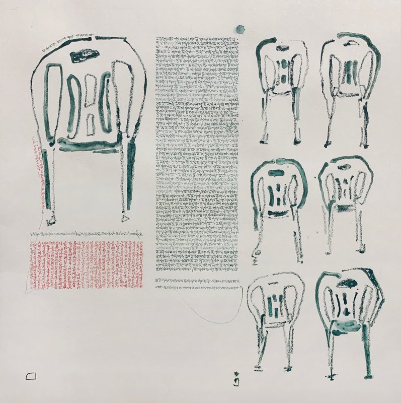 순지에 먹, 채색, 수성크레용