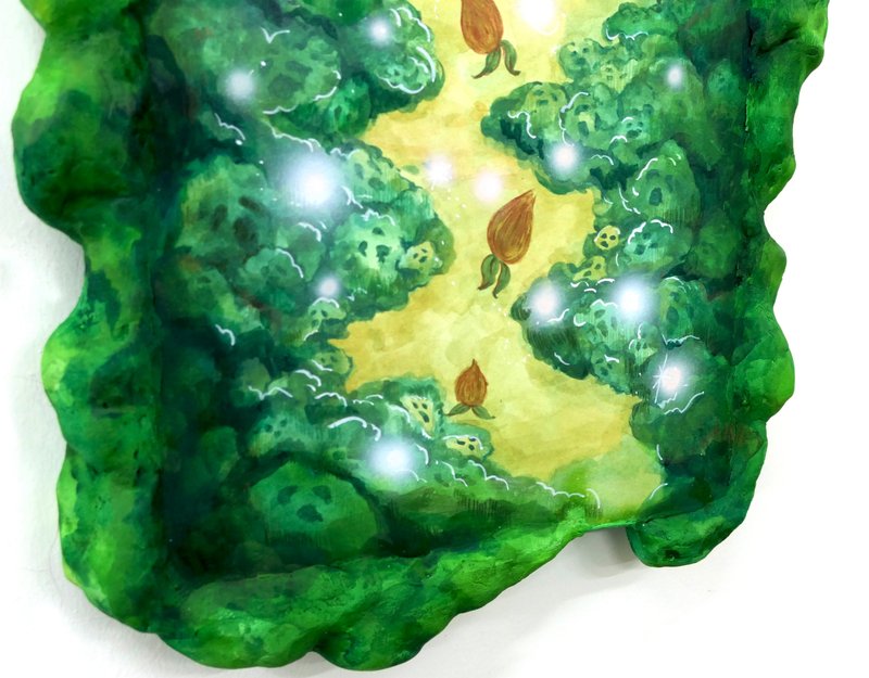 종이에 종이에 과슈, 색연필, 에어브러쉬, 점토