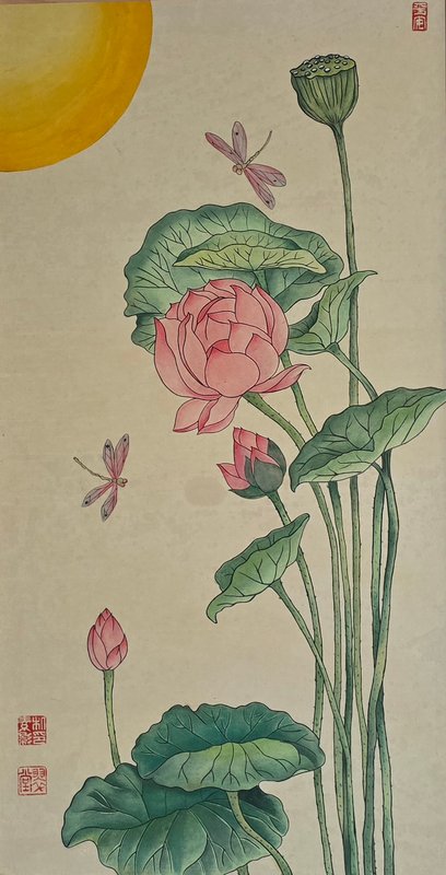 한지에 수간분채, 봉채, 먹
