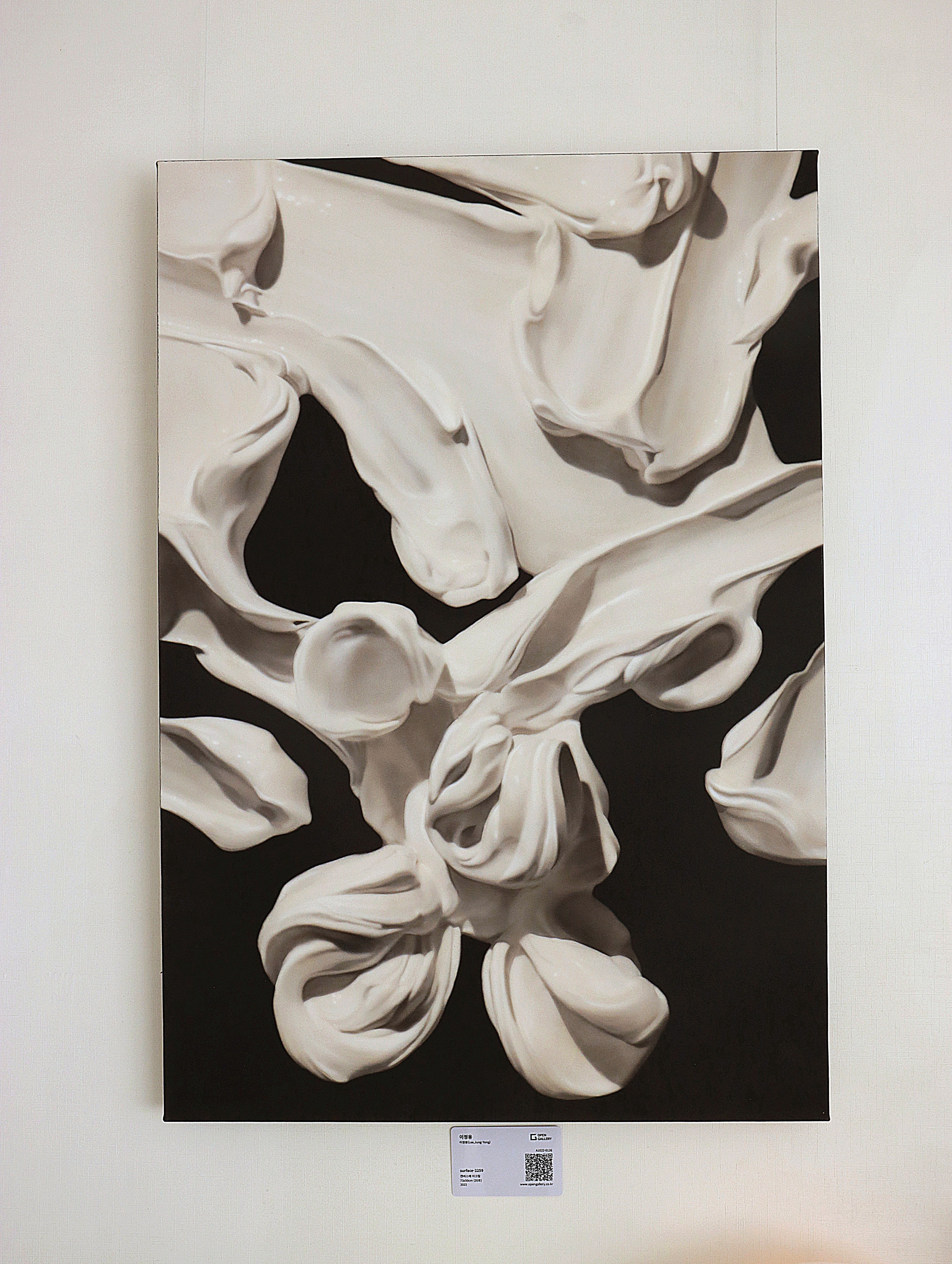 모던하면서 고요한 무드가 느껴지고, 시간이 지날수록 화폭의 질감과 형태의 미묘한 긴장감이 전해지더라고요. 이정용 작가님은 시작적인 인상보다 마음 깊은곳에서 사유를 일깨우는 힘이 있어, 매일 바라볼 때마다 새로운 해석과 감정을 끌어내는 매력이 있답니다. 회색과 검정의 모노톤 컬러가 화이트톤 저희집 거실에 블랙포인트 되면서 차분하고 안정감 있는 space로 바뀌었답니다.