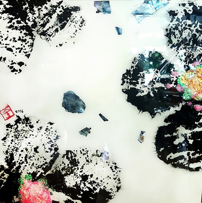 장지에 혼합재료