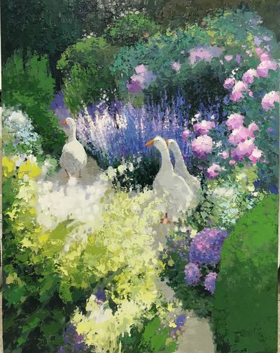세월의 내려앉은 지붕이라는 작품명과 어울리게 세월의 흔적이 그림 속에 묻어나는 것 같아서 상상력을 자극한답니다.