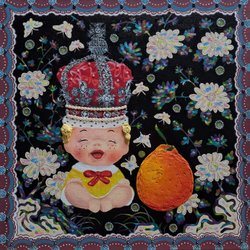캔버스에 아크릴, 진주파츠, 모델링페이스트, 오팔더스트, 32x32cm (6호), 2026 | A1804-0238