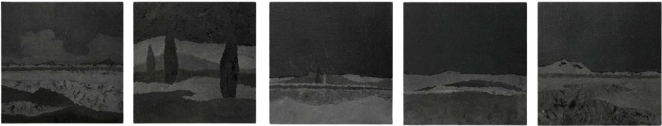 장지에 먹, 혼합 재료, 콜라주, 총 30x150cm (변형 25호, 총 5피스), 2024 | A1856-0083