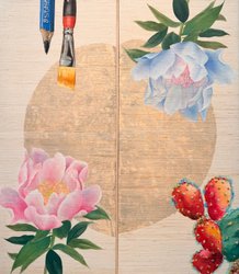 춘포에 혼합 재료, 금박, 석채, 총 70x60cm (변형 25호, 총 2피스), 2025 | A2625-0013