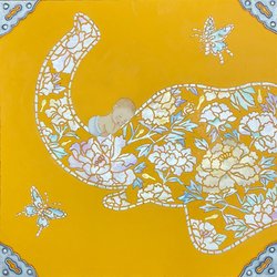 이합장지에 먹, 혼합 재료, 분채, 46x46cm (10호), 2024 | A2639-0017