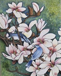 비단에 비단에 아교 포스 후 장지 배점 한국화 물감으로 채색, 45x37cm (8호), 2020 | A2726-0001