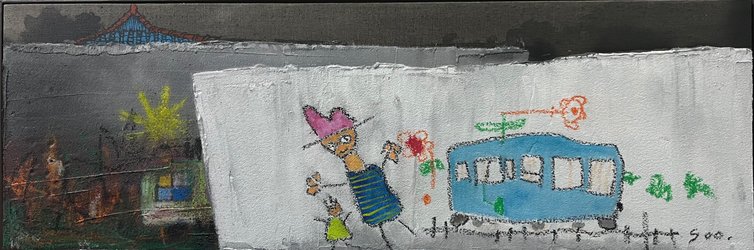 나무화판에 캔버스천 사용.에 아크릴, 오일파스텔, 테라코트, 30x90cm (변형 12호), 2025 | A2826-0043