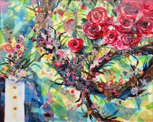 캔버스에 한복천과 자수및 메디움 혼합콜라주, 73x91cm (30호), 2016 | A2884-0005