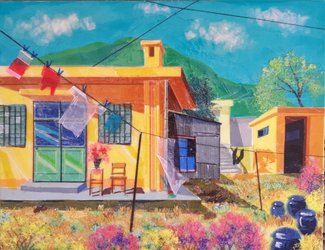 캔버스에 한복천과 실 콜라주, 32x41cm (6호), 2019 | A2884-0012