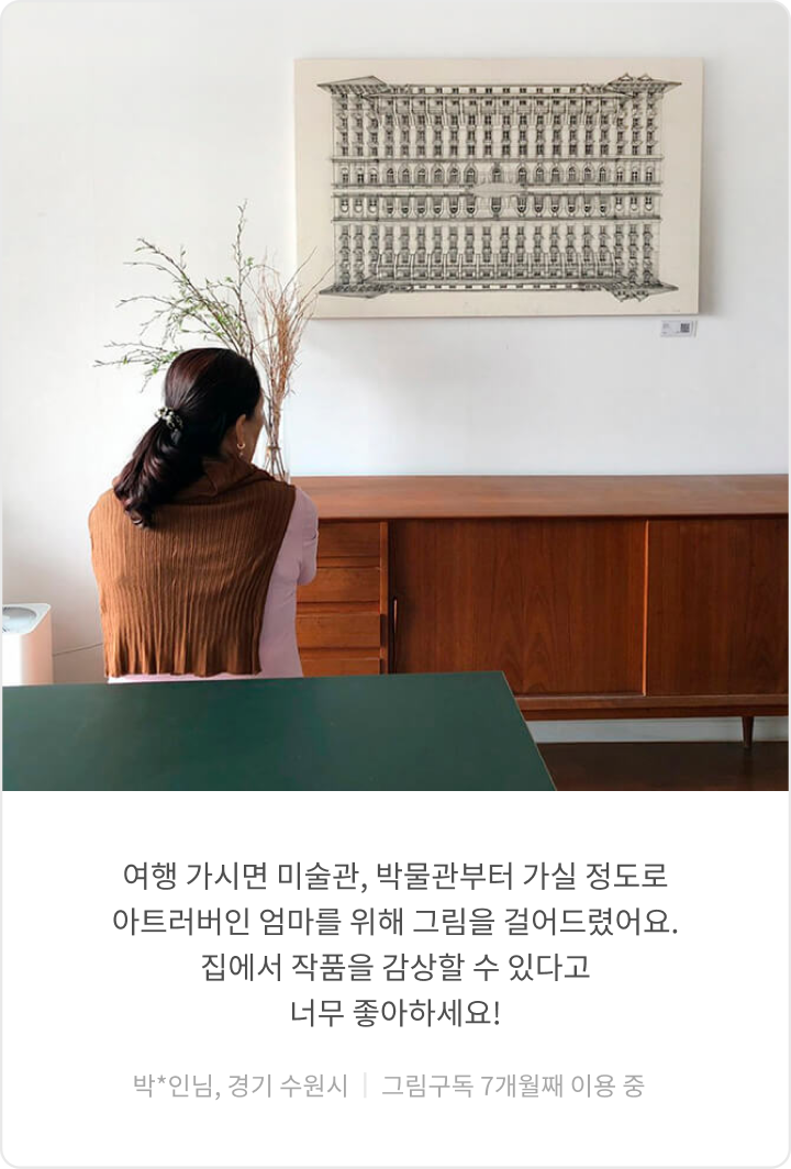 첫 3개월 구독료는 이벤트가로 일시불 결제되며, 이후 일반구독 시 매달 작품 크기에 따른 구독료가 결제됩니다.