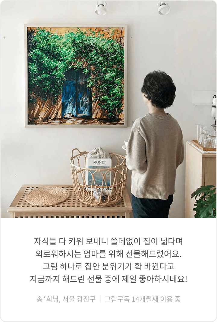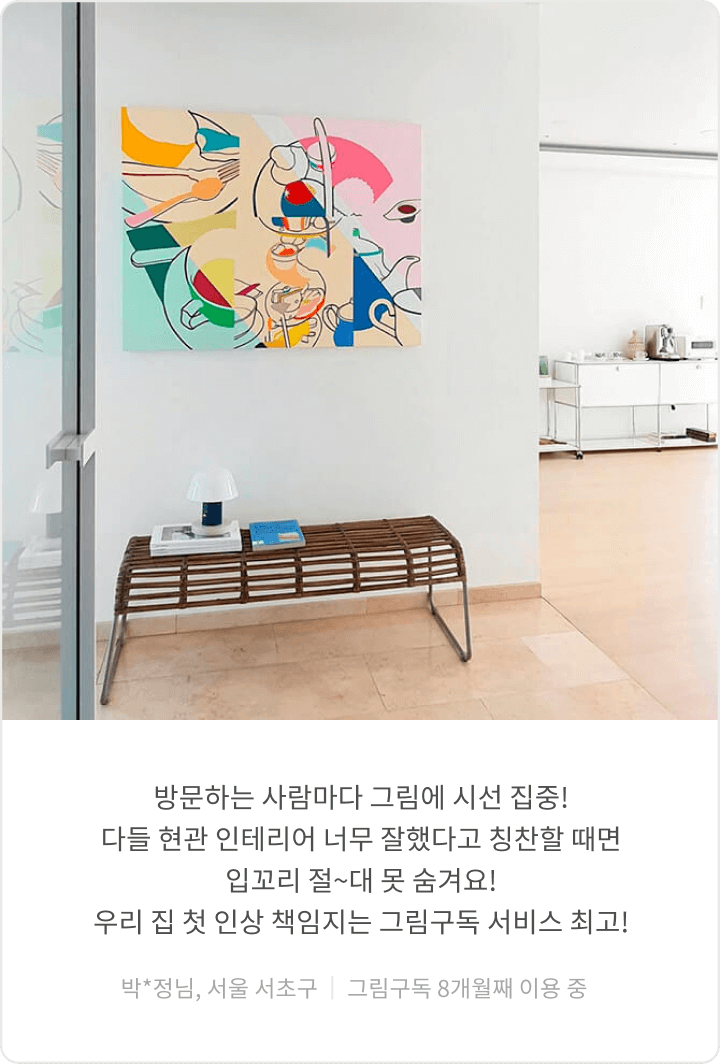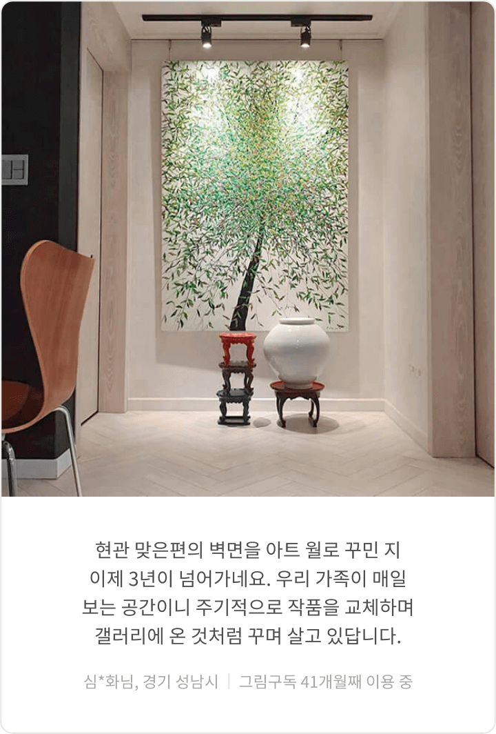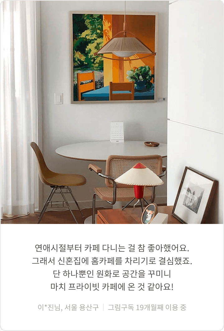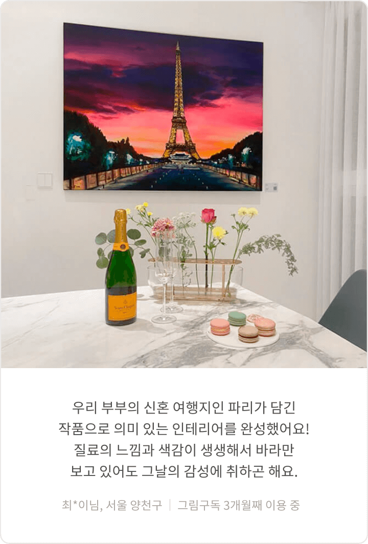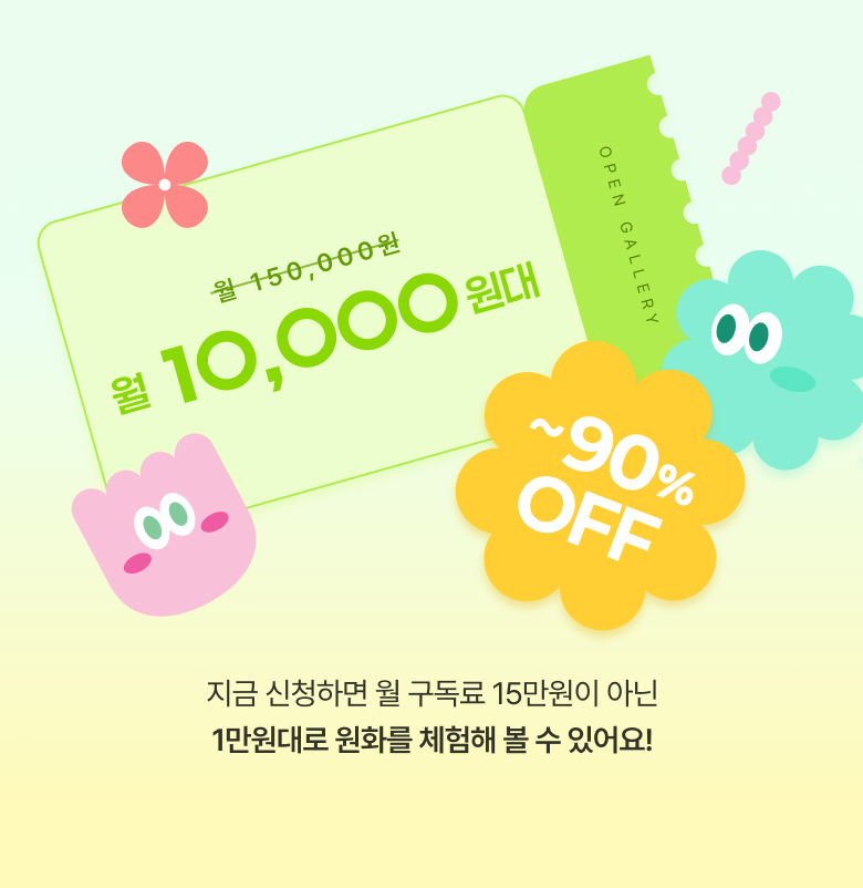첫 3개월 구독료는 이벤트가로 일시불 결제되며, 이후 일반구독 시 매달 작품 크기에 따른 구독료가 결제됩니다.