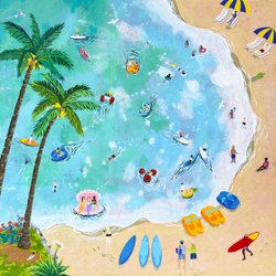 "The Wave of Life 한 획, 한 획 반복되어 겹치고 쌓이며 확장되어 흘러가는 물결은 우리 삶을 투영시켜 보여준다. 작품을 가득 메우는 하나하나의 결은 사회를 구성하는 개개인이며 이러한 결들이 모여 물결을 이루는 것은 서로 영향을 주고받으며 살아가는 대중의 모습과 유사하다. 물결은 단순히 물 그 자체를 나타내는 것뿐만 아니라 우리의 삶, 또는 작가의 삶의 흐름과 연관시킨다. 즉, 시간과 세월의 흐름인 동시에 우리의 삶도 유동적이고 불규칙하게 흘러가는 것을 보여준다. 물결은 끊임없이 움직이며 흘러갈 뿐 아니라, 불규칙한 듯 보이면서도 반복적인 패턴으로 특유의 리듬을 만들어 간다. 이러한 모습은 어제와 닮은 오늘을 다시금 살아가는 우리의 생활과 매우 흡사하다. 작가는 물결과 삶의 여정을 겹쳐 보이며, 인간의 삶과 물, 개인과 사회의 조화를 엮어 다양한 색채와 패턴으로 리듬을 만들어낸다. 물결의 생기 있는 표현과 다채로운 색을 통해 개개인이 지닌 개성과 다양성을 표현하고 삶의 근원과 맞닿아 있는 물의 생명력을 통해 긍정적인 에너지를 가져다준다. -작가노트 중"