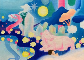 조서경 초대 개인전 [FAIRYTALE]은 동화에서 영감을 받은 작품들로 상상력으로 가득한 모험 이야기 속에서 자신이 주인공인 세계를 꿈꾸는 동심을 표현했다. 전시의 대표작 <물들다> 시리즈는 행복한 유년 시절을 보낸 아이들이 밝고 건강한 어른으로 자랄 수 있다는 생각을 담았다. 작가의 추억을 회상하며 현실에 존재하지 않는 풍경 안에 이제는 내면 속에서만 존재하는 어린 아이와 동물을 배치하여 환상적인 이야기를 그려낸다. 밝고 다양한 색채를 통해 관람자의 지친 마음도 치유하고 스트레스를 받거나 힘든 하루를 살아가는 사람들에게 새로운 에너지를 선사하여 어린 시절 꿈꿨던 달콤한 판타지 세계로 초대하고자 한다.