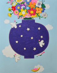 종이에 아크릴, 혼합 재료