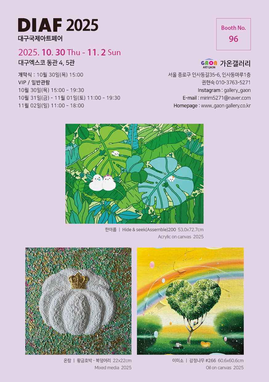 개막식 : 10월 30일(목) 15:00 VIP / 일반관람 10월 30일(목) 15:00 - 19:30 10월 31일(금)- 11월 01일(토) 11:00 19:30 11월 02일(일) 11:00- 18:00 |