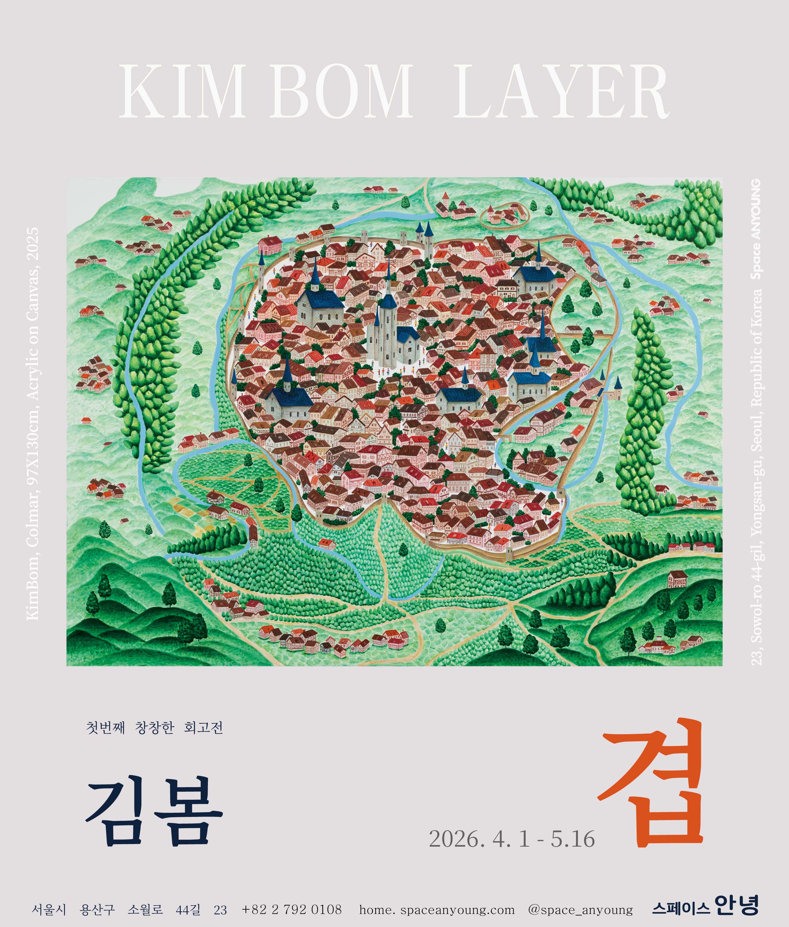 - 스페이스 안녕의 첫번째 '창창한 회고전'으로 김봄의 2000년대 초반부터 최근 작품까지 보실 수 있는 전시입니다. 김봄의 조립된 산수, 그림지도, 나무 연작, 해외 풍경 시리즈 등 20점을 모아 전시합니다.
