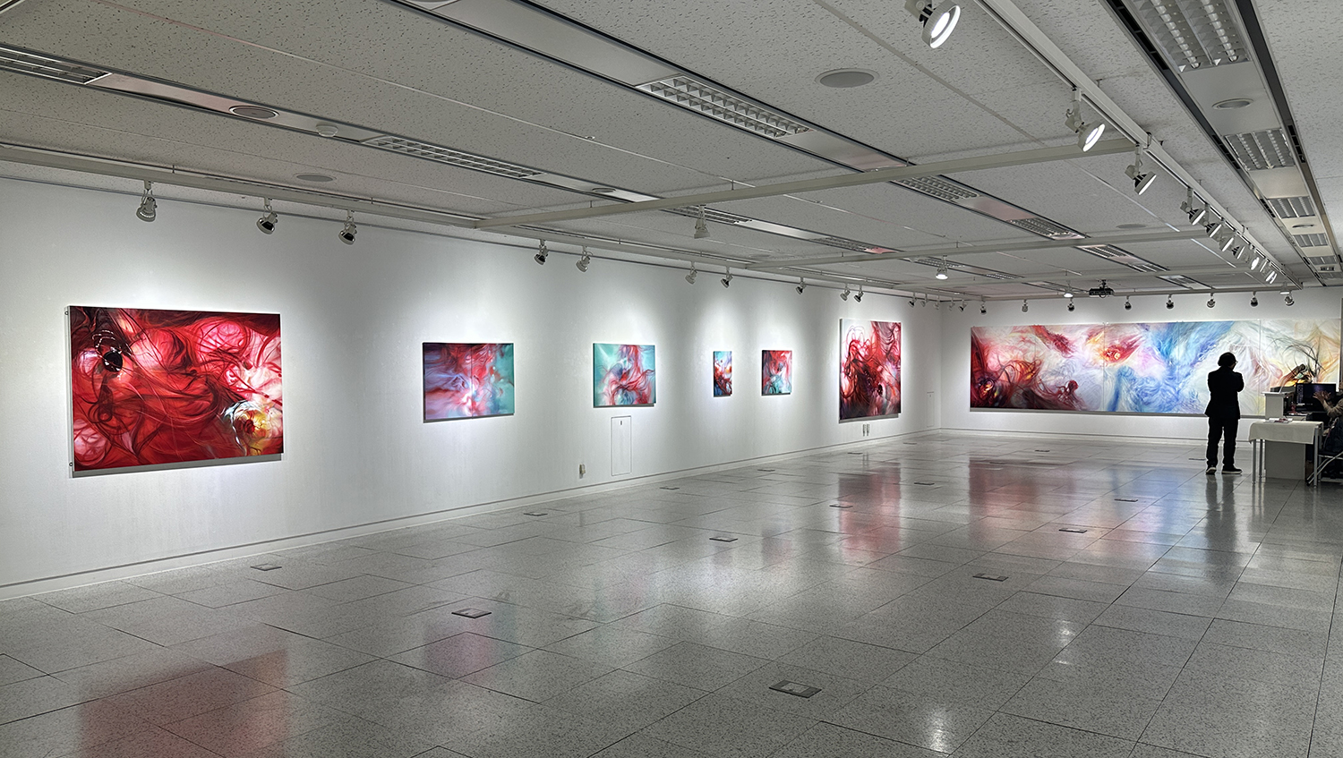 당신의 코라는 무엇인가? 선이 만드는 유연한 리듬은 그 길이만큼의 시간을 의미할 수도 있고 선이 지나가며 만든 결은 감정의 흔적처럼 보이기도 한다. 선의 강도, 리듬에서 느껴지는 속도감, 운집되고 사라지는 공간을 ‘코라(Chōra)’ 칭하고 그 안에서 형상이 해체된 인간을 표현하고자 한다. 내가 사유하는 인간은 흐릿하고 분화되지 않은 존재이다. 나의 작업을 통해 <기억>, <시간>, <죽음>을 이어 <재탄생>을 상상하며 그 존재하지 않는 시간 속에 인간을 잠재적인 가능태로써 작가가 의도한 배치와 구도속에서 재탄생의 순간을 출현시키고자 한다. 나는 흩어지고 사라지는 상실의 경험을 현실의 물질에 응결시켜 가지고자 하던 인간의 나약한 내면의 욕망을 바라보고 있다. 2023년-2024년 「단절과 연결」 시리즈를 거치며 실은 선들의 직조를 통해 형성되는 공간으로 확장되었다. 이때 화면은 재현의 장이 아니라, 서로 다른 감각과 시간의 층위가 얽히는 관계적 장으로 작동한다. 선의 중첩과 교차는 일정한 방향성을 갖지 않은 채 밀도와 강도의 변화를 형성하며, 화면 전반에 걸쳐 유동적인 리듬을 구축한다. 공리화 될 수 없는 ‘코라(Chōra)’를 작가적 해석으로 존재와 비존재의 틈을 열어 침묵의 공간에서 인간의 신체가 액화되고 해체되어 고정된 주체의 개념을 흔들고, '코라’적 공간안에서 감각과 사유가 교차하는 새로운 존재의 출현을 기다리는 장소를 만들고 있다. 화면 속 끊임없이 변주하는 선들의 율동은 내면 깊은 곳에서 감각성을 회복하려는 의지를 드러낸다. 미세한 톤의 차이 속에 숨은 앵프라맹스적 회화성은 현대인의 모호한 정서를 건드리며, 잊힌 감각을 다시 불러낸다. 관람자는 표상을 넘어서는 시각적 체험 속에서, 어긋나듯 교차하는 시선과 의식이 만나 활성화되는 새로운 감각의 차원을 마주하게 된다. 사라지고 흩어지는 틈 속에서도 내면의 강인함이 깨어나길 바라며, 인간이 다시 태어나는 그 시간을 오롯이 견뎌내길 소망한다.